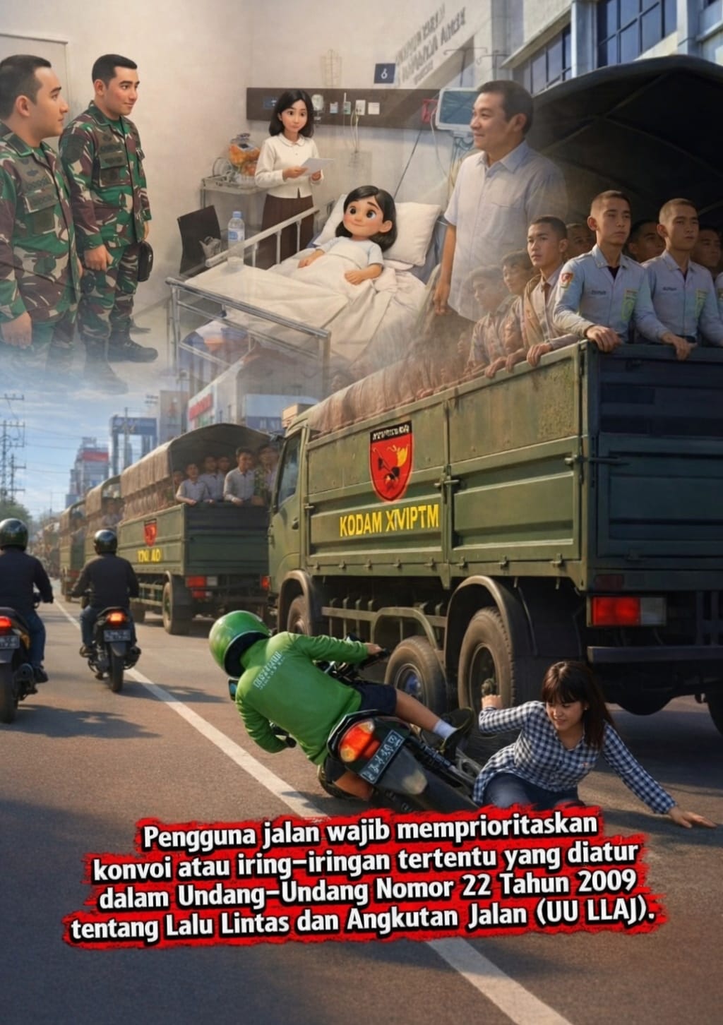 ​Kolonel Heri juga mengingatkan masyarakat untuk mematuhi UU No. 22 Tahun 2009 tentang Lalu Lintas, terutama kewajiban memberikan prioritas kepada kendaraan yang berada dalam pengawalan petugas, serta menjaga jarak aman demi keselamatan bersama.