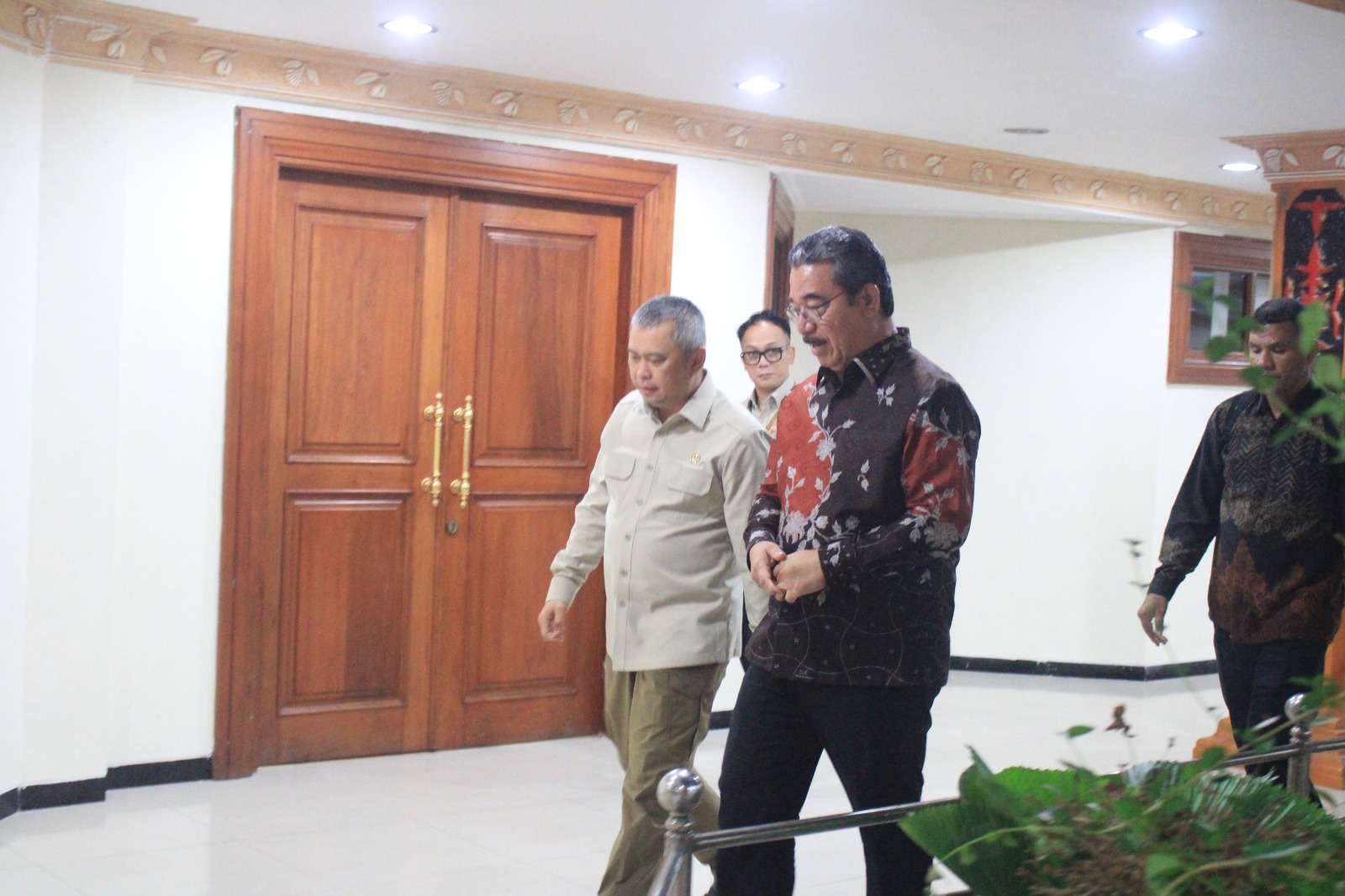 Dalam kunjungan ini, Menteri Perhubungan didampingi oleh sejumlah pejabat teras Kementerian Perhubungan, di antaranya Dirjen Perhubungan Darat, Dirjen Perhubungan Laut, dan Dirjen Perhubungan Udara.