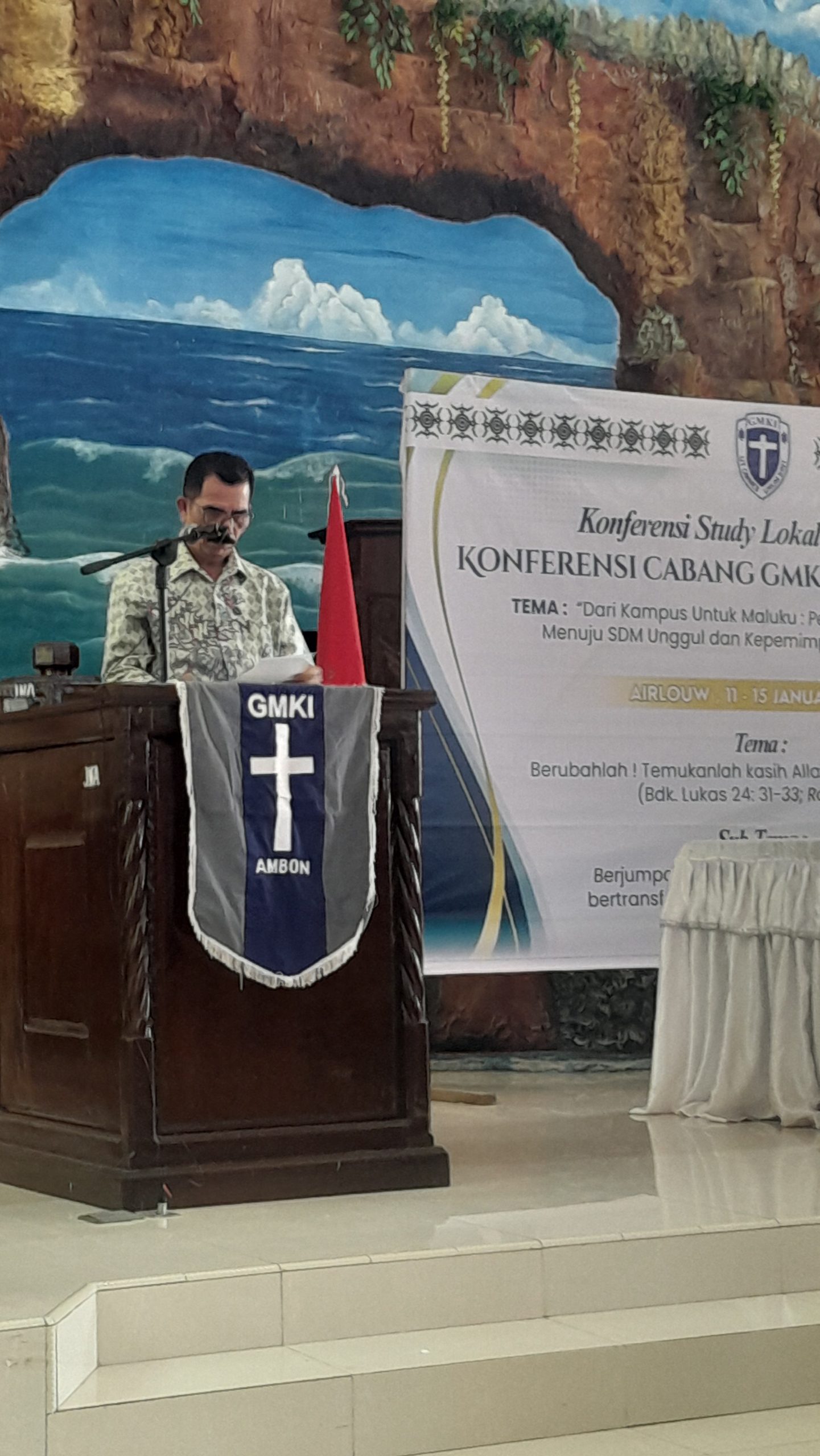 ARUMBAE.COM AMBON-Staf Ahli Wali Kota Ambon Bidang Ekonomi, Pembangunan, dan Kesejahteraan Rakyat, Rustam Simanjuntak, ST, MT,hadir mewakili Wali Kota Ambon sekaligus menyampaikan sambutan resmi Pemerintah Kota Ambon pada kegiatan Konvercab yang ke -35 yang berlangsung di Gedung Gereja Bethesda, Jemaat GPM Airlouw, Kecamatan Nusaniwe, Kota Ambon.pada Minggu (11/1/2026).