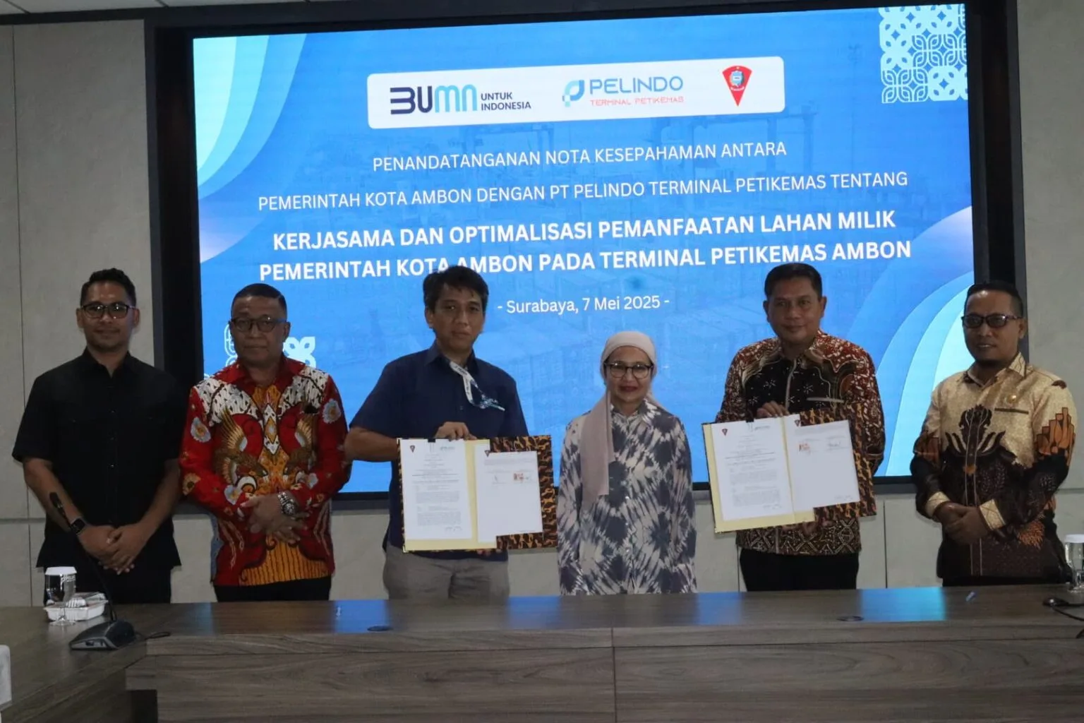 Penandatangan MoU ini dilakukan langsung oleh Wali Kota Ambon, Bodewin Melkias Wattimena dan Direktur Strategi dan Komersial PT Pelindo, Rima Noviyanti, disaksikan oleh sejumlah pejabat Pemkot Ambon dan jajaran manajemen Pelindo.