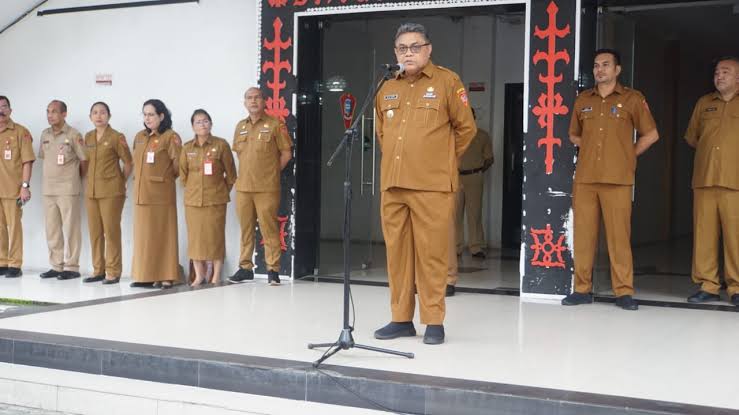 ARB.COM, – Pj. Wali Kota Ambon, Dominggus N. Kaya berpamitan dengan seluruh ASN Pemerintah Kota (Pemkot) Ambon pada apel pagi terakhir yang dipimpinnya sebagai Penjabat, Senin (17/2/25) di Balai Kota.