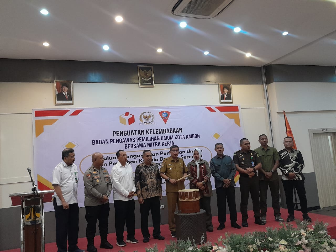 ARUMBAE.COM, Ambon, 15 September 2025 – Wali Kota Ambon, Drs. Bodewin M. Wattimena, M.Si, secara resmi membuka kegiatan Penguatan Kelembagaan Badan Pengawas Pemilihan Umum (Bawaslu) Kota Ambon bersama Mitra Kerja sekaligus Evaluasi Pengawasan Pemilu dan Pilkada Serentak Tahun 2024. Kegiatan ini berlangsung di Aula Lantai 5 Manise Hotel, Tanah Tinggi, Kecamatan Sirimau, Kota Ambon, Senin (15/9), mulai pukul 09.30 WIT.