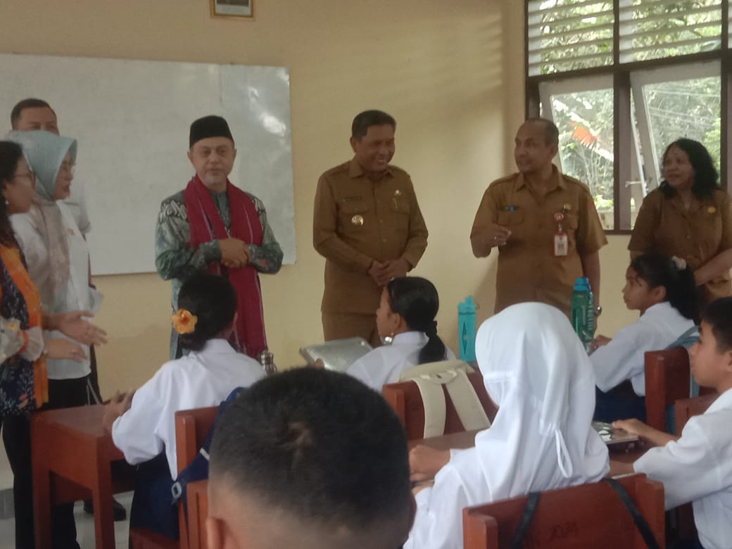 ARUMBAE.COM, Ambon, 26 Agustus 2025 — Komitmen pemerintah dalam meningkatkan kualitas pendidikan dan gizi anak-anak kembali dibuktikan melalui kunjungan Wali Kota Ambon, Bodewin M. Wattimena, bersama Wakil Ketua DPD RI, Tamsil Linrung, ke SMP Negeri 15 Ambon di Desa Hative Besar, Selasa (26/8).
